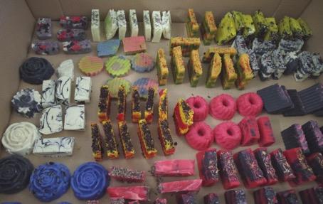 mso-ansi-language:DE;mso-fareast-language:EN-US;mso-bidi-language:AR-SA">Tolle Exemplare sind dabei entstanden; Farben, Düfte und Formen in vielen Variationen. Einen Tag nach der Herstellung muss die Seife geschnitten werden und dann trocknen. Zum Markttag, Ende November, wurde die Seife hübsch verpackt und von der Klasse 9a verkauft.