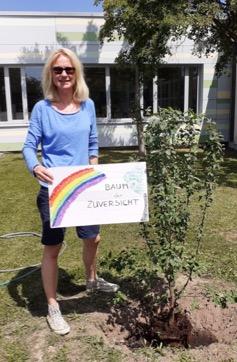mso-ansi-language:DE;mso-fareast-language:EN-US;mso-bidi-language:AR-SA">Das Apfelbäumchen, das ich dann zusammen mit Frau Pfaff pflanzte, erhält den Beinamen „Baum der Zuversicht“. Denn die brauchen wir bei der Bewältigung der Corona-Krise und auch hinsichtlich der Zukunft unserer Umwelt.