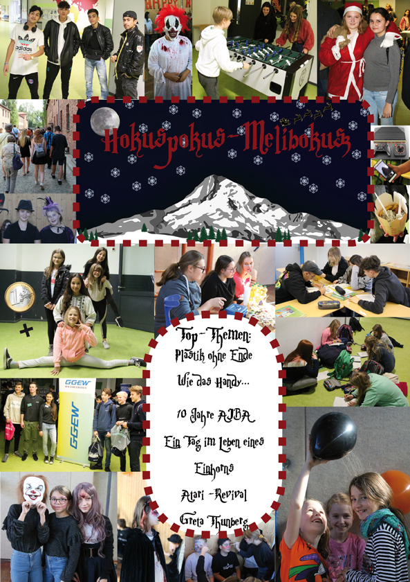Es gibt auch eine neue 3. Ausgabe der Schülerzeitung "Hokuspokus Melibokus". Sie gibt auf 32 Seiten Einblicke ins Schulleben, in Neuheiten und aktuelle Trends. Kommentare beschäftigen sich mit dem weltweiten Geschehen und der Sorge um die Zukunft. Interviews und Hintergrundberichte ermöglichen Einblicke, die leider oft viel zu wenig beachtet werden.