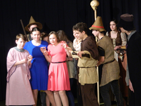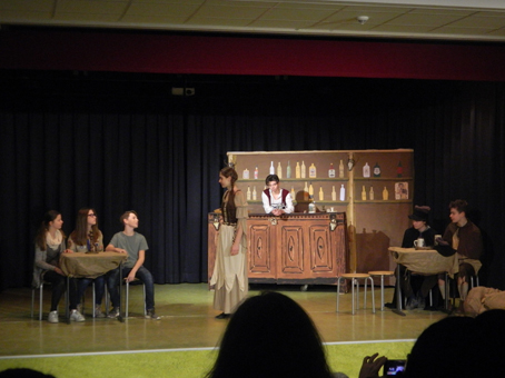 Unter Regie unserer Theaterfrau Johanna Barth, zeigten unsere Achtklässler (Svenja Radermacher, Simon Haack, Emily Gehron, Mia Laudan, Luisa Haack, Dana Roßkamp, Luis Wörrlein, Marianne Masak, Ephraim Kaether, Niklas Jenny, Marco von Ah, Anna Kreibich und Renée Dittrich), sowie Milana Lenz aus der 7. Klasse, Yasemine Caiazza aus der 6. Klasse und Philipp Rathgeber aus der 9. Klasse, ihr seit Anfang des Schuljahres erarbeiteten Stückes.