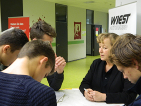 Die Schülerinnen und Schüler der 8.-10. Klassen erhielten, direkt in der Schule, beim Markt der Möglichkeiten, Gelegenheit bei 25 Gastfirmen sich über die Ausbildung in der Region zu informieren. Alle Unternehmen stellten ihre Ausbildungsmöglichkeiten vor. Die Arbeitgeber hatten gleichzeitig die Chance ihre zukünftigen Auszubildenden kennenzulernen. Die Schülerinnen und Schüler der 9. Haupt- und Realschulklassen erhalten beim Speed-Dating, mit den Personalverantwortlichen in einem Vorstellungsgespräch, die Möglichkeit, sich mit ihren vorbereiteten Bewerbungsunterlagen, zu präsentieren. Sie nutzen erfolgreich diese Form des Bewerbungsgespräches.