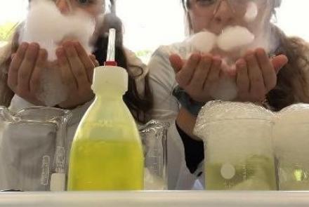 Für den 07.05.2019 konnte unsere Chemielehrerin, Frau Freydank, einen der begehrten Vormittage am TU-Juniorlabor Darmstadt reservieren. Experimente rund um das Thema Luft standen im Mittelpunkt. Wir wurden wir von Wissenschaftlern aus dem Bereich Biologie und Frau Dr. Schmidt, der Laborleiterin betreut. Wie ihr wisst, besteht die Luft aus 78% Stickstoff, 21% Sauerstoff und 1% aus Kohlenstoffdioxid, Edelgasen (Argon). Für unseren ersten Versuch wurde flüssiger Stickstoff in den „Stuttgarter Trichter“ gegossen. Stickstoff und siedet bei -196°C. Dabei kondensiert an der Außenseite des Trichters